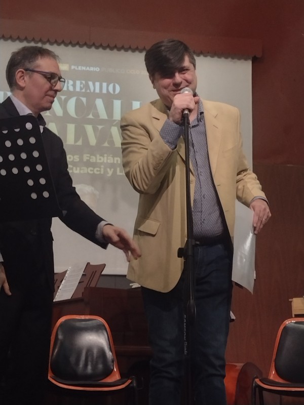 Agradecido al recibir el premio, manifestó: «Es un mimo que viene muy bien y más, porque lo recibo de cofrades académicos y esto tiene valor emotivo». Y puso un toque de humor: «Hace cinco años me convocaron para un ciclo con tangueros del interior, en el CCK, diciéndome que era un referente. Ahora me entregan esta distinción. Primero, soy referente, después me llega este reconocimiento… lo próximo que viene es el Panteón de SADAIC«.