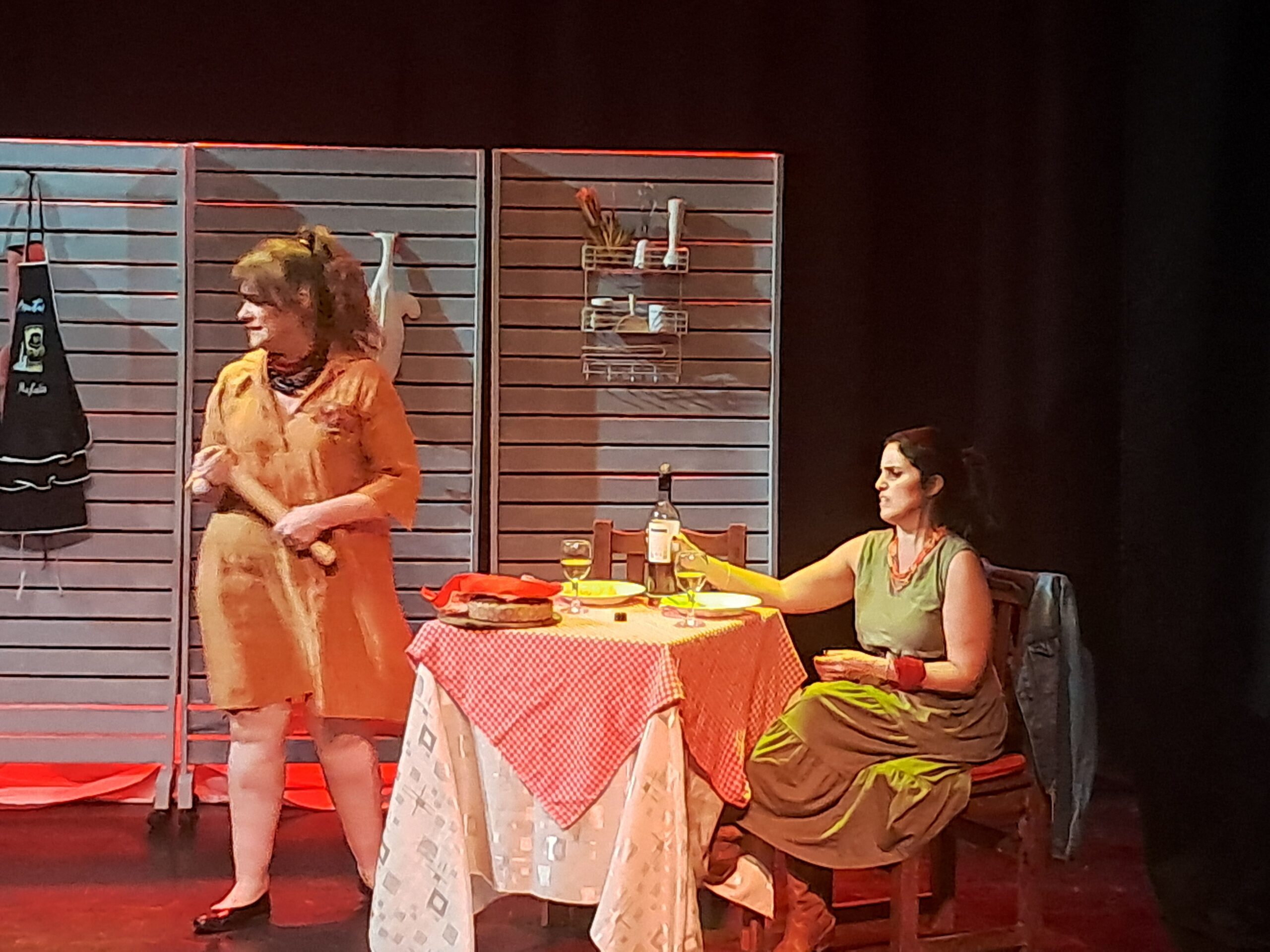 Bueno, la obra surgió por esta necesidad de hacer comedia, y de que sea algo atractivo Por eso son tres obras cortas, que me parece que está buena para el espectador porque es dinámico. Entonces fuimos buscando distintos textos en el grupo, en conjunto, hasta que dimos con estashistorias de Eloísa Tantola y Patricia Suárez, que nos encantaron. Las dos primeras obras son de Patricia y la otra es Eloísa. Así lo fuimos armando y ensayando, nos inclinamos a la comedia y creamos el espectáculo que tiene el hilo conductor del cielo-tierra-inferno, donde los personajes se expresan de manera expuesta y van exponiendo todas sus miserias de una manera tragicómica.