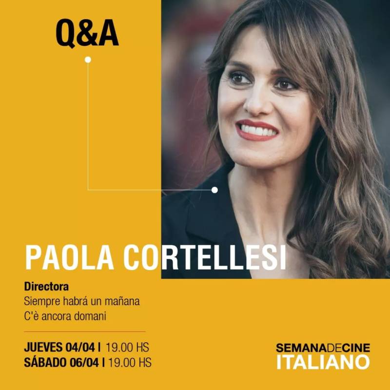 Paola Cortellesi, actriz participante en el papel de Delia, una sufrida costurera víctima de violencia de género, y que se estrena como directora en Siempre habrá un mañana, estará presente en el estreno y posteriormente dialogará con los espectadores.