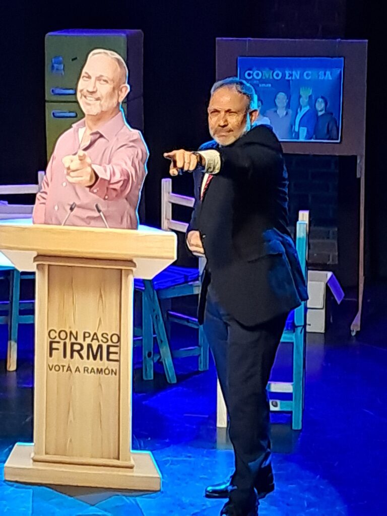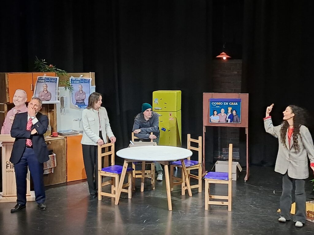 Sí, es una comedia de Cristina Clemente, una dramaturga española, y se hizo una adaptación para Argentina y que dirige Violeta Cárcova. Es una familia que instaura una especie de gobierno con su presidente, que votan presupuestos y demás. Y el conflicto principal arranca cuando la hija les hace un cuestionamiento a los padres por qué, por el reglamento, no se puede presentar como candidata a la presidencia. Ahí arranca el conflicto de la obra.