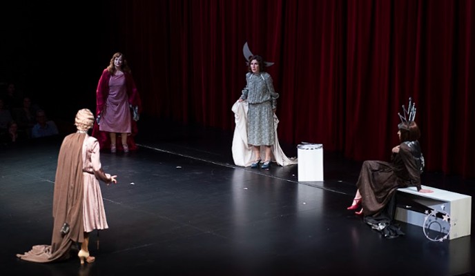 Pues bien, en La Mujer Fantasma, obra de Mariano Tenconi Blanco, esos dos temas son las columnas sobre las que se posan muchos otros. Eso sí: todos interpretados deliciosamente por cuatro actrices cuyos acentos españoles generan una distante proximidad con la obra y con los textos.