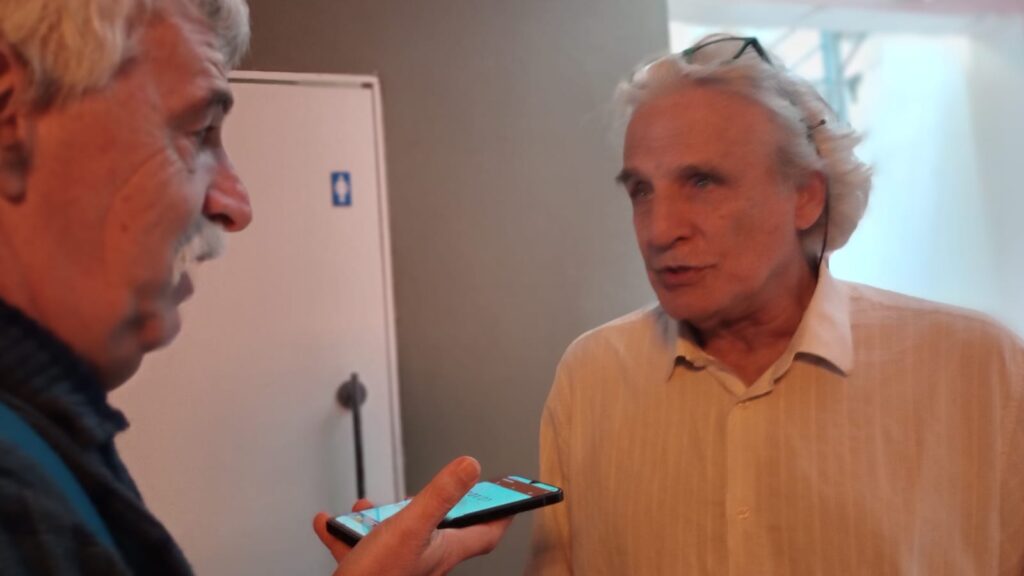 Minutos antes del inicio de la función mantuvo un breve diálogo con El Café Diario®. Sobre su regreso al país señaló que «estoy a la carrera, digamos, porque es muy corto el tiempo y hay muchas cosas que hacer. Estoy contento porque se hizo el reestreno de El paraíso perdido. Y también al estreno de Historias contrabajo, que es la obra de teatro que hice con mi sobrino Pablo Brie. Voy a volver a ver El Equilibrista, que dirigí, con Mariano Dayub. Y a dar el seminario Pensar la escena, durante tres días. Este viaje es tocata y fuga».