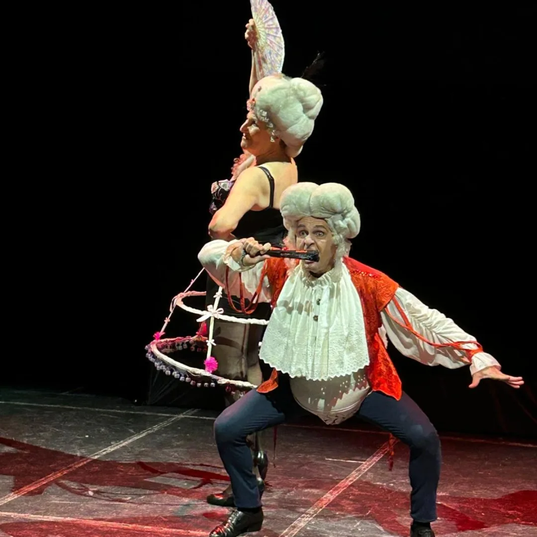 Este delirante, apocalíptico y sorprendente recorrido -protagonizado por Leandro Rosati (también dramaturgo y director de la obra), Dalila Real y Marcela Trajtenberg, quien entra y sale de distintos personajes, y aportes ingeniosos de Sebastián Tutt, del grupo Los Cometabras- comienza con las exigencias de una productora artística transmitiendo instrucciones de un misterioso director a una pareja de actores-bailarines interpretando mensajes de los poderosos de turno.