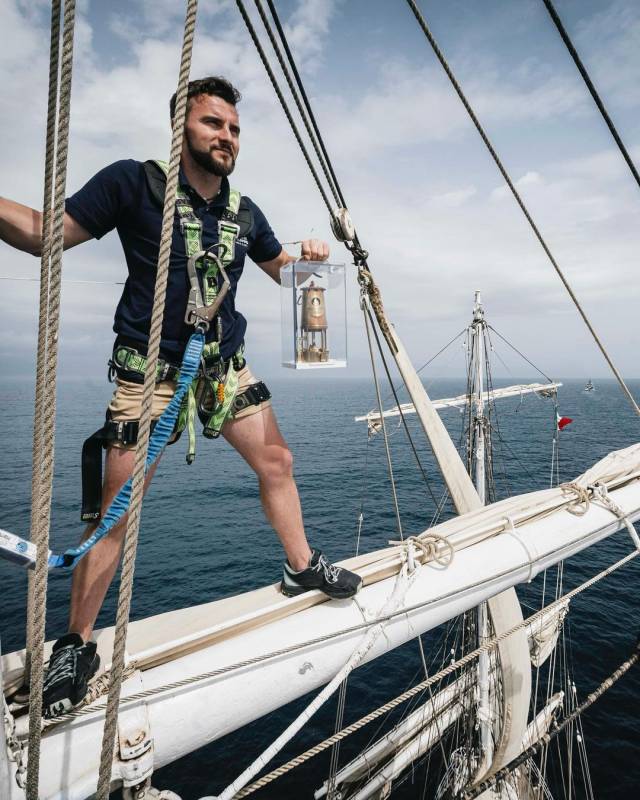 De allí pasó a una antorcha, con un peso de poco más de un kilo, que inició su recorrido, transportada por corredores que se van relevando durante el camino. El remero griego Stefanos Duskos, ganador de la medalla de oro en los Juegos Olímpicos de Tokio 2020, fue el primer portador de la legendaria antorcha.