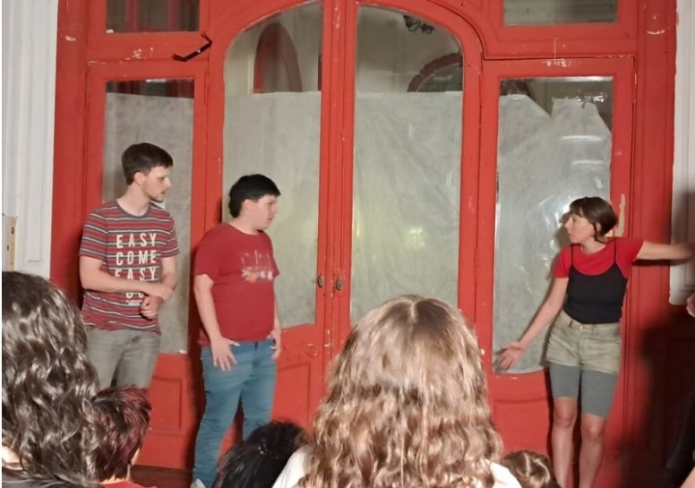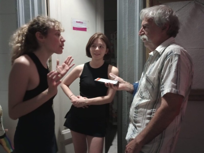 Minutos antes de las 21, los espectadores empiezan a reunirse en la vereda de la Mansión Cultural, en el barrio de Almagro, o en la larga y antigua escalera que conduce a la puerta de ingreso en el primer piso.