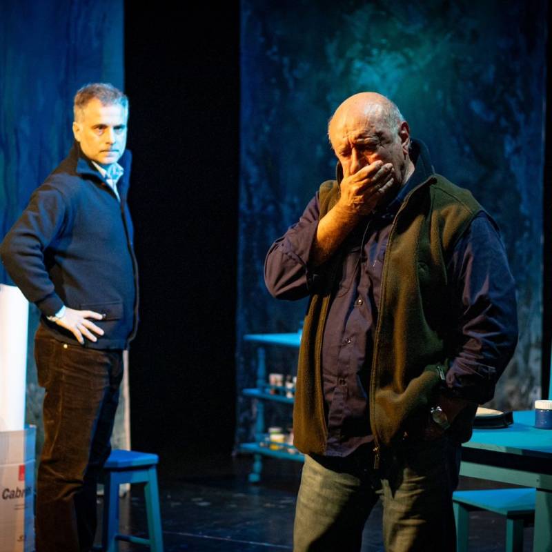 La lluvia seguirá cayendo, escrita por Barney Finn y Marcelo Zapata, es una obra que realmente nos representa. Porque habla de la relación entre un padre y un hijo, pero también del tiempo presente, de lo que tiene que ver con la modernidad en el arte y en la vida. Tiene muchos temas que abarcan todo de manera muy profunda. Está muy bien escrita y por suerte, creo yo, sin ánimo de hablar bien de mí, bien actuado y con un gran trabajo de Paulo.