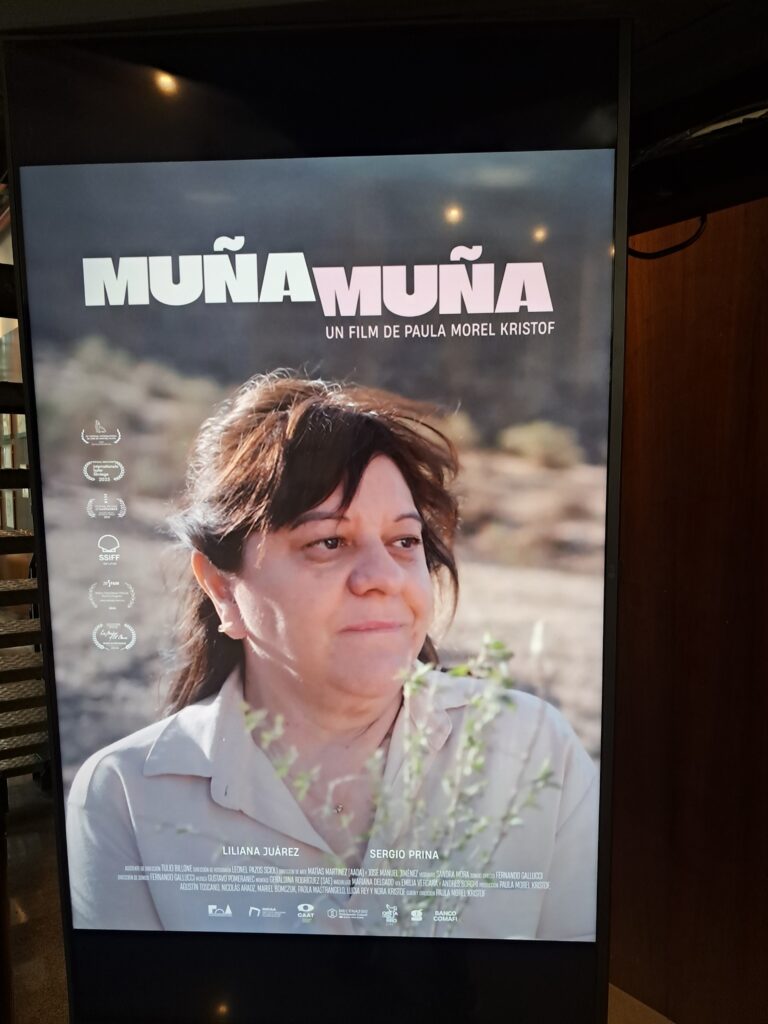 La película la filmamos íntegramente en Tucumán, de donde es mi familia, con elenco y con gran parte del equipo técnico, la mayoría, también tucumanos. Bueno, el nombre elegido para la película fue Muña Muña, que es el yuyo del amor, que crece en esa región de Tucumán. Es la historia de Olga, una enfermera que vive en El Mollar, en los Valles Calchaquíes. Ella está por quedarse con el nido vacío, porque su hijo se está por ir de viaje, y en ese tránsito, en esos días, se enamora y ese amor le trae un montón de preguntas acerca de su propio deseo.