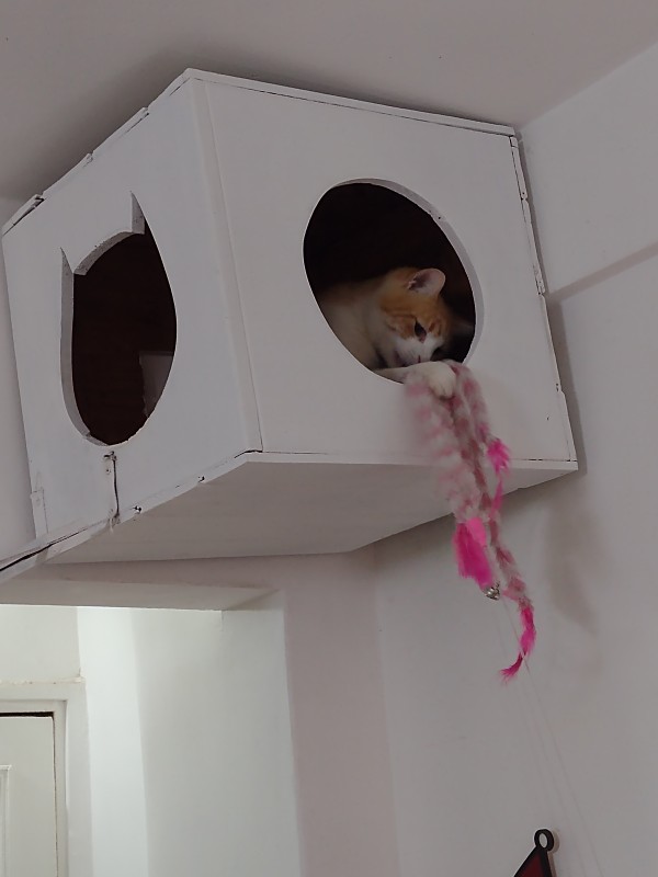 En el sitio, más amplio en energía y comodidad que en metros cuadrados, los once gatos conviven en perfecta armonía. Los visitantes pueden mimarlos, acariciarlos, jugar, alimentarlos –el pollo es su comida favorita– o simplemente observarlos. El jardín es el sitio más deseado, aunque los días de baja temperatura o de luvia, toda la acción se desarrolla bajo techo.